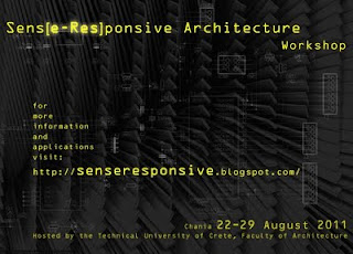 The Sens[e-Res]ponsive Architecture Workshop will take place during 22-29.08.2011 at the Department of Architecture at the Technical University of Crete in Chania, Greece.